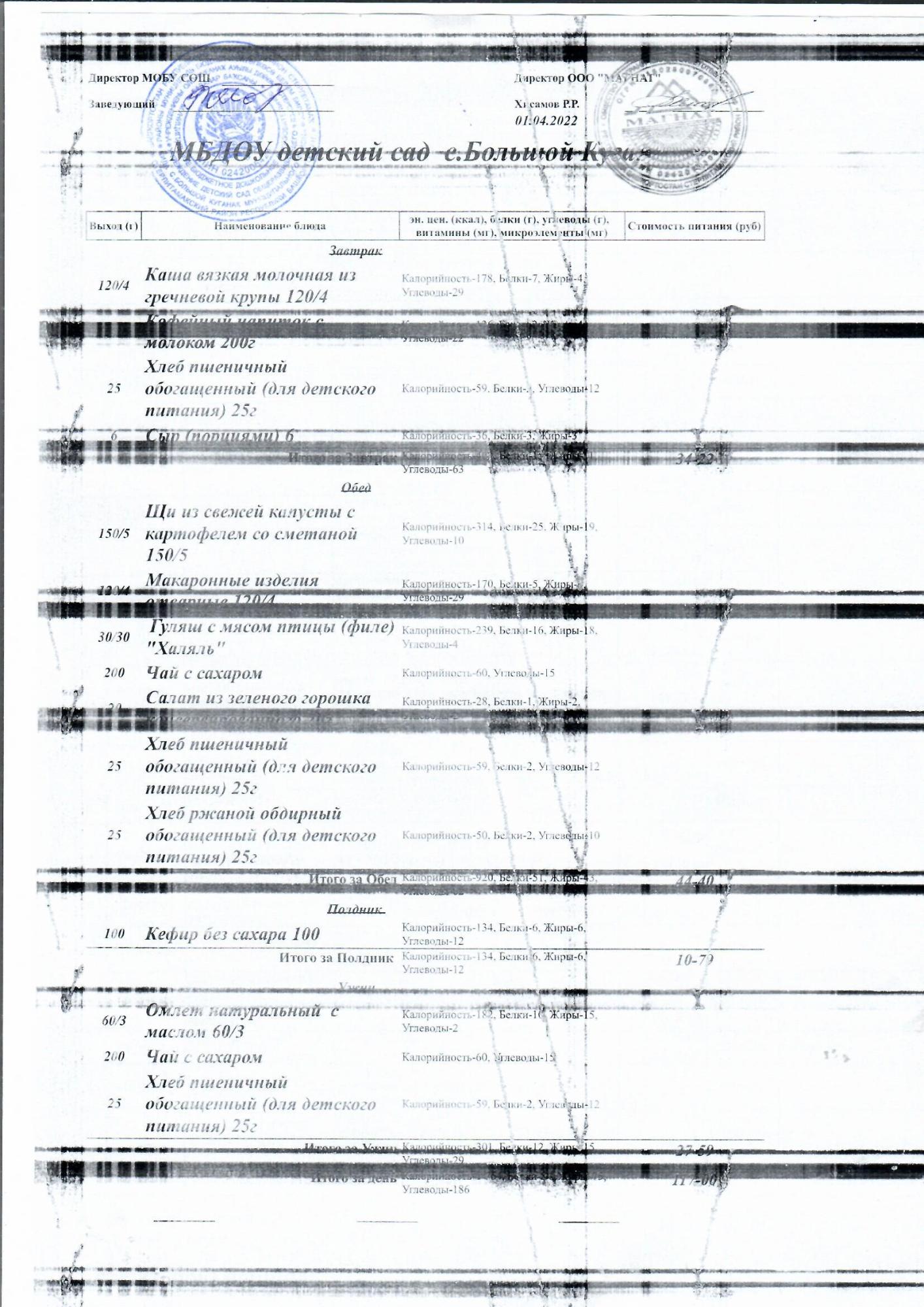 Основное 2-недельное меню