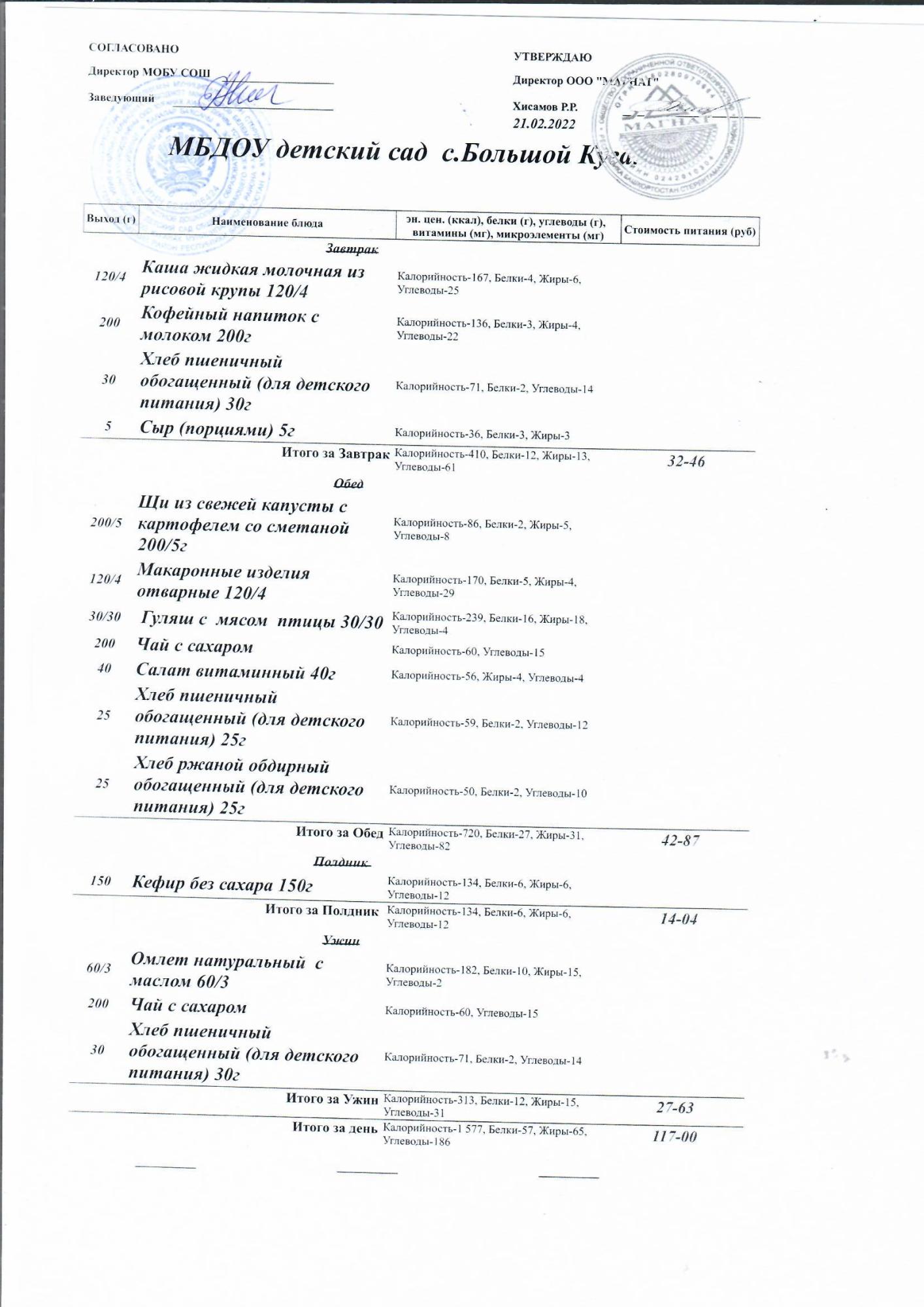 Основное 2-недельное меню