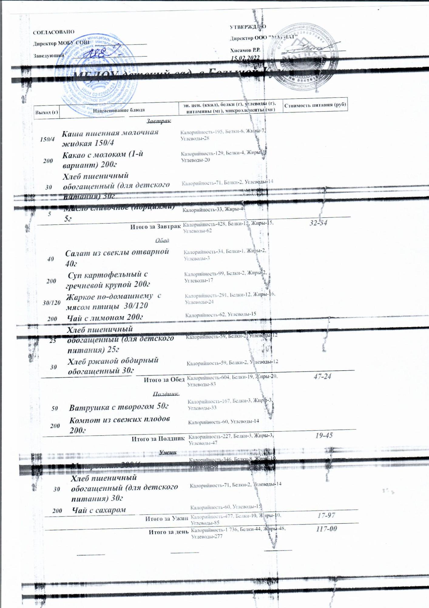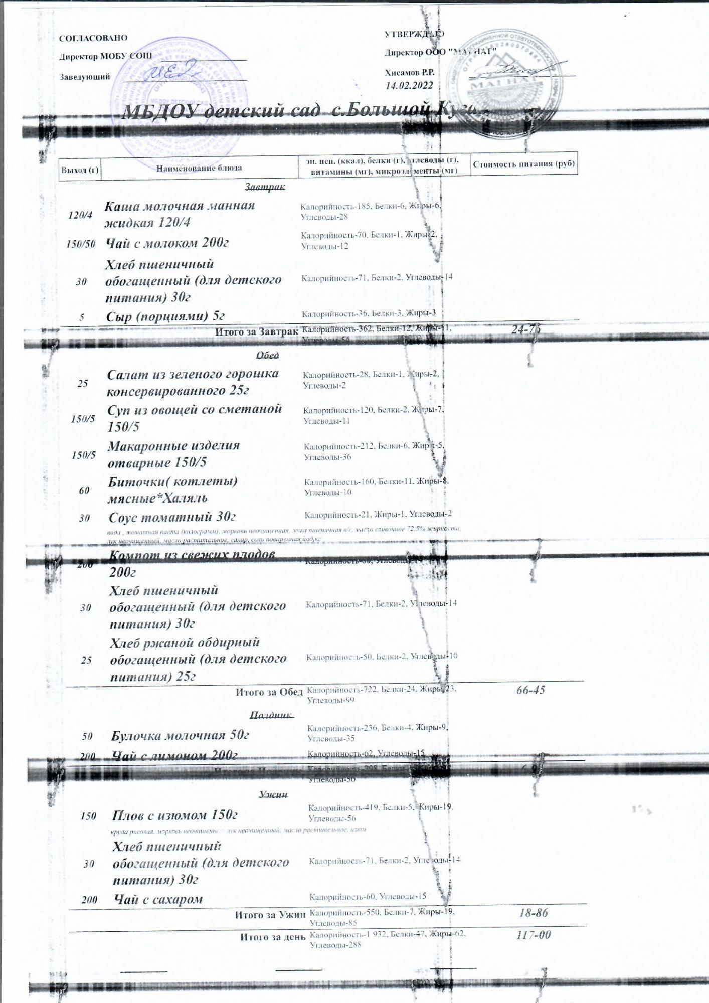 Основное 2-недельное меню
