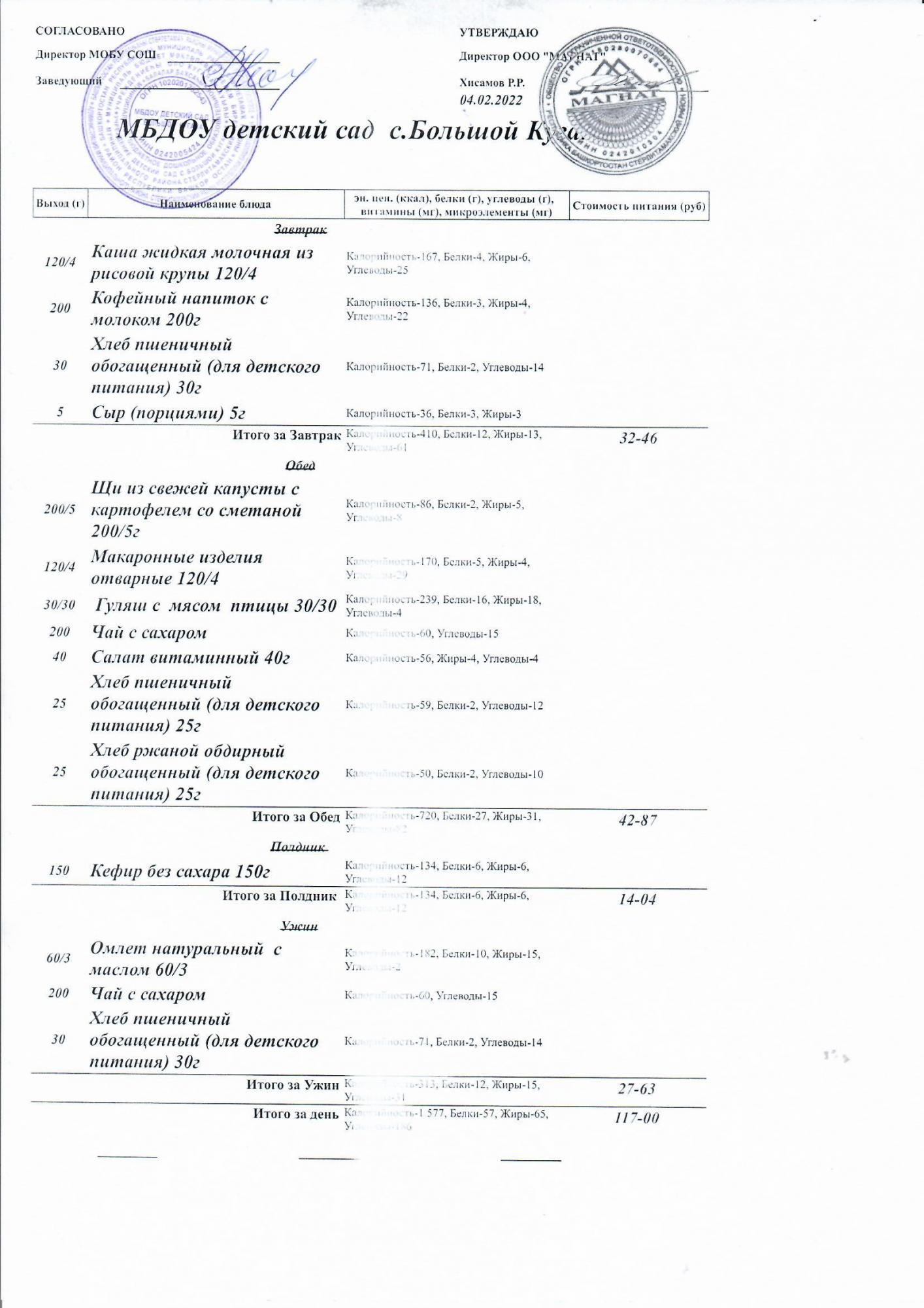 Основное 2-недельное меню