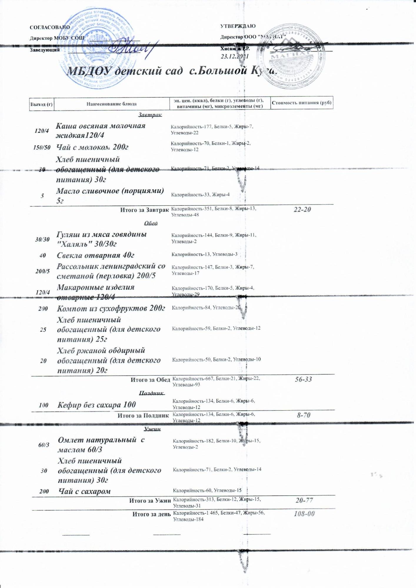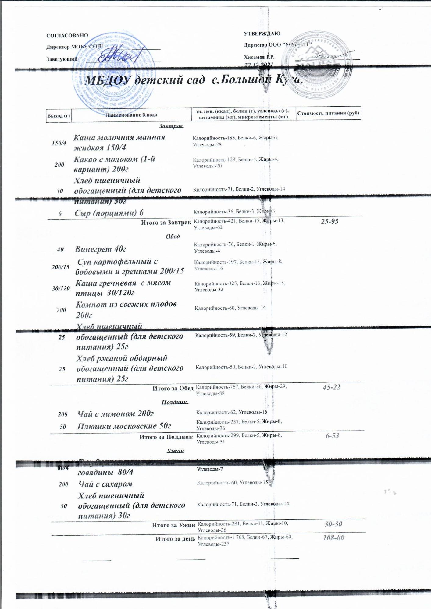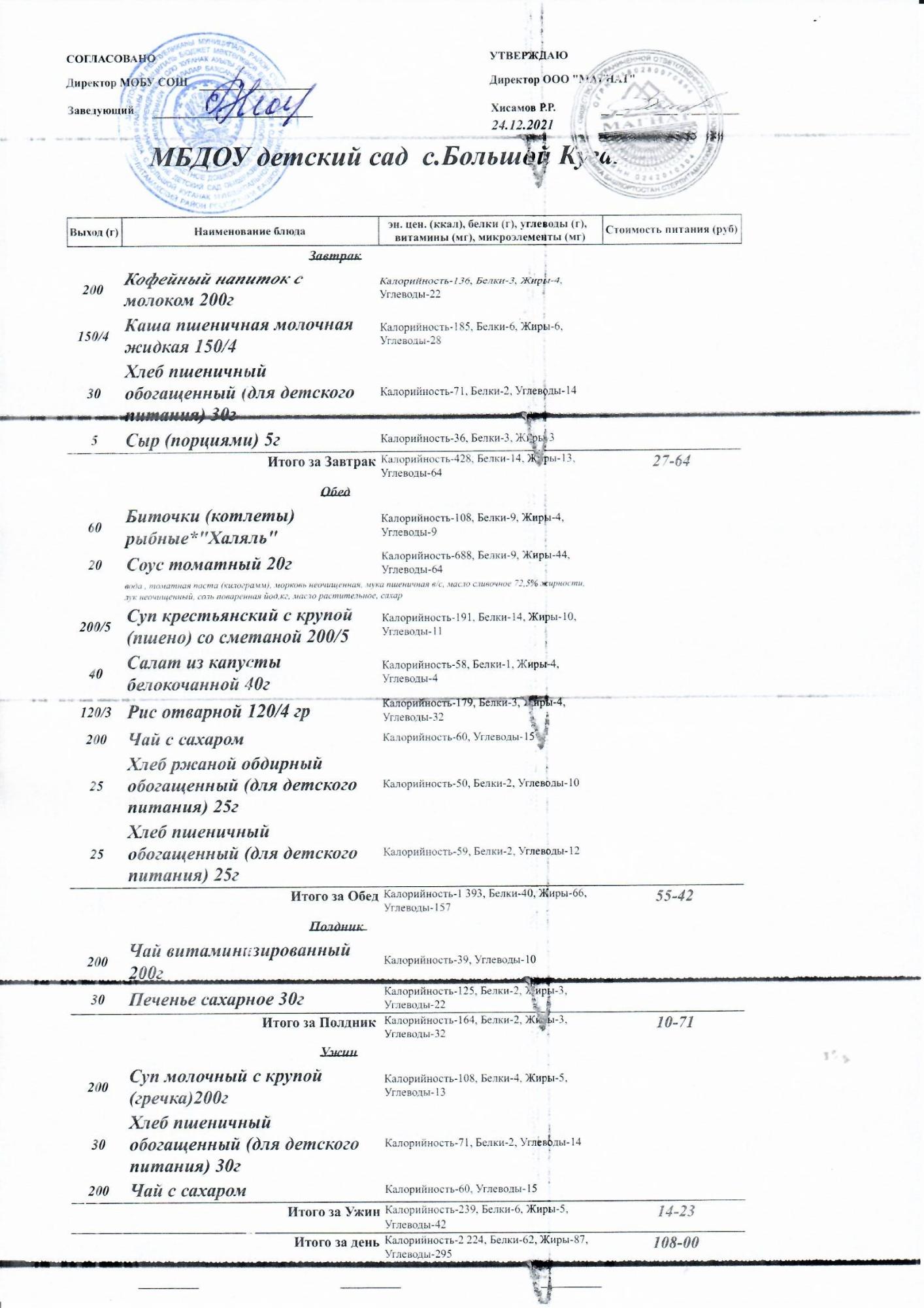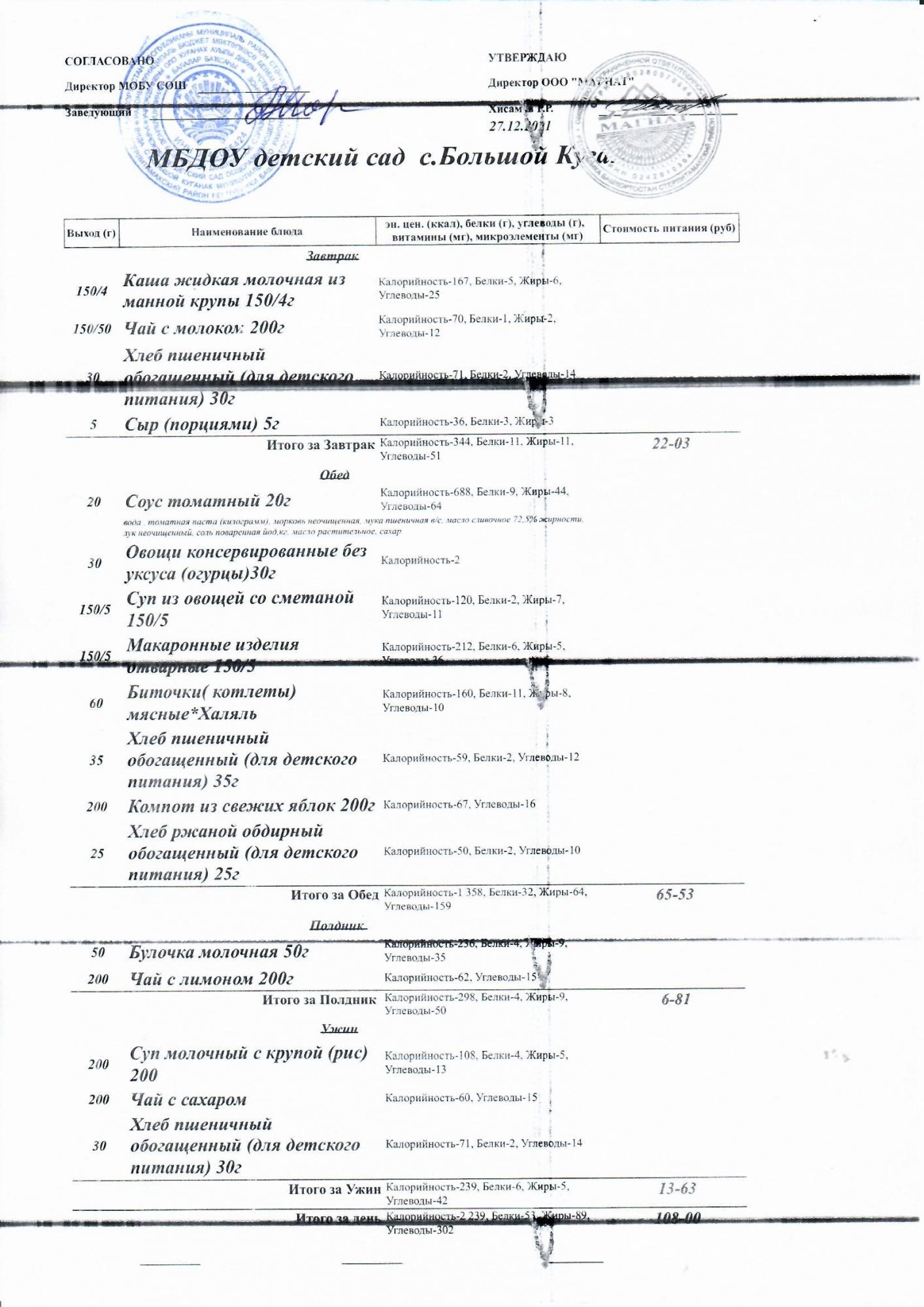 Основное 2-недельное меню