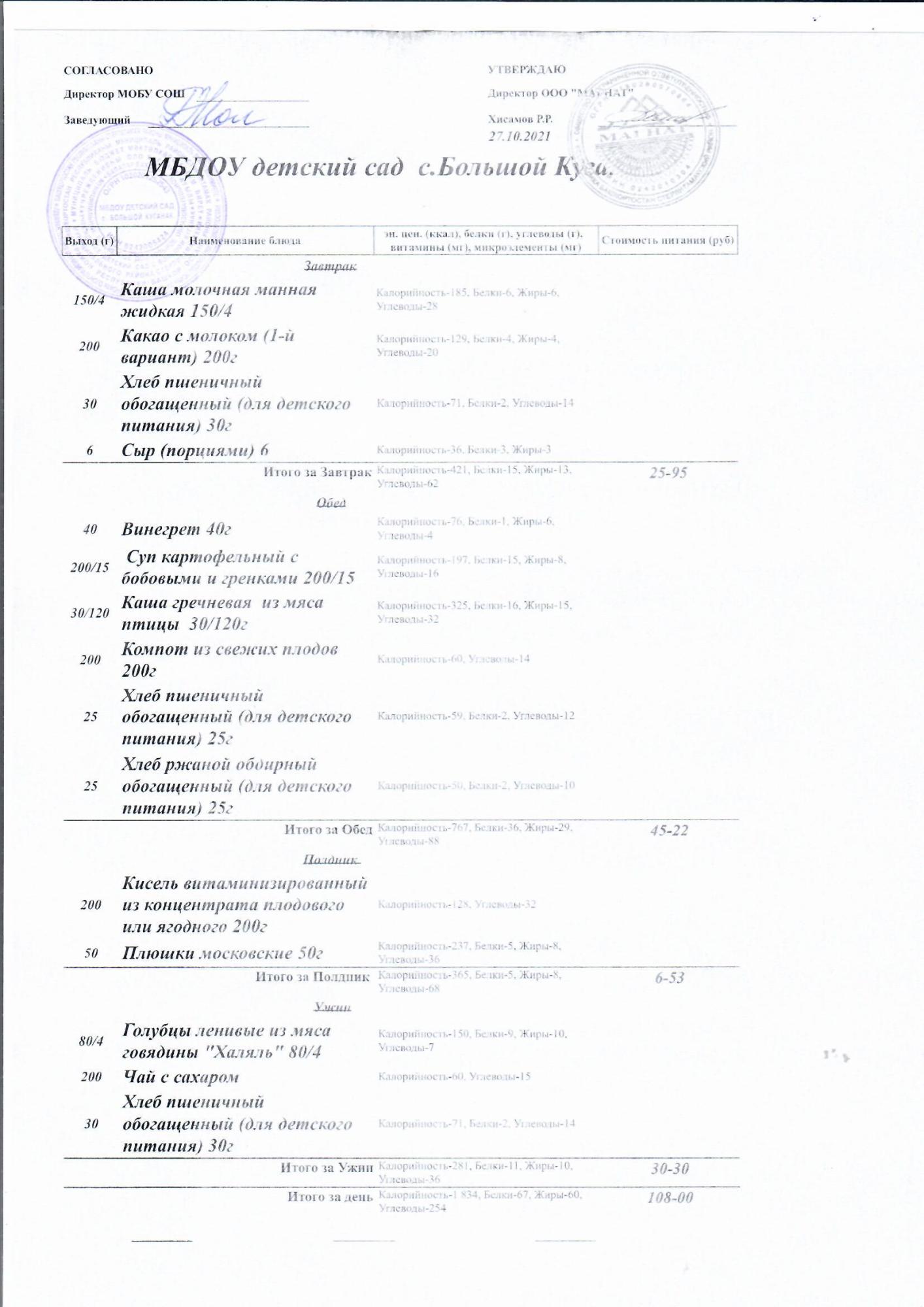 Основное 2-недельное меню